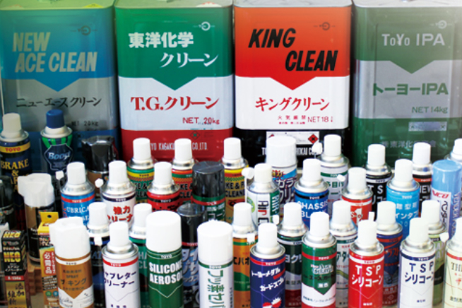 - 離型剤・潤滑剤・防錆剤など、製造現場で使われる化学製品(スプレー等)が中心です。用途や課題に合わせて最適な製品を提案します。